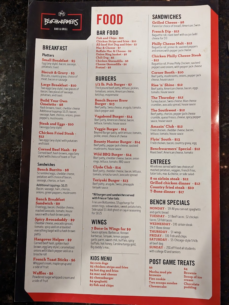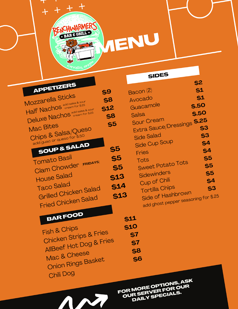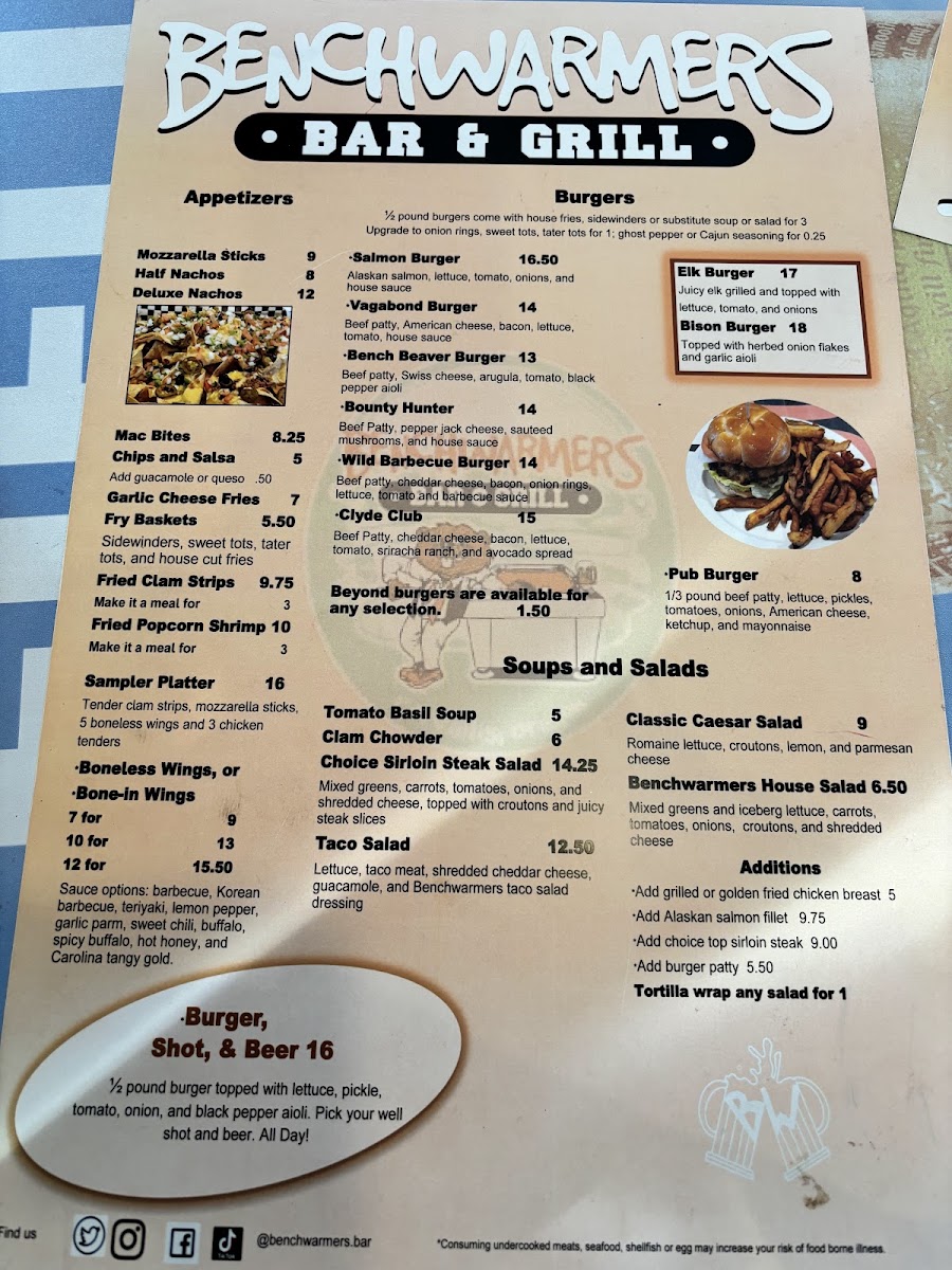 Benchwarmer's Bar & Grill Menu