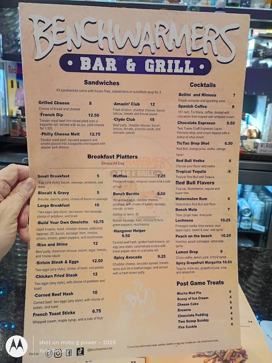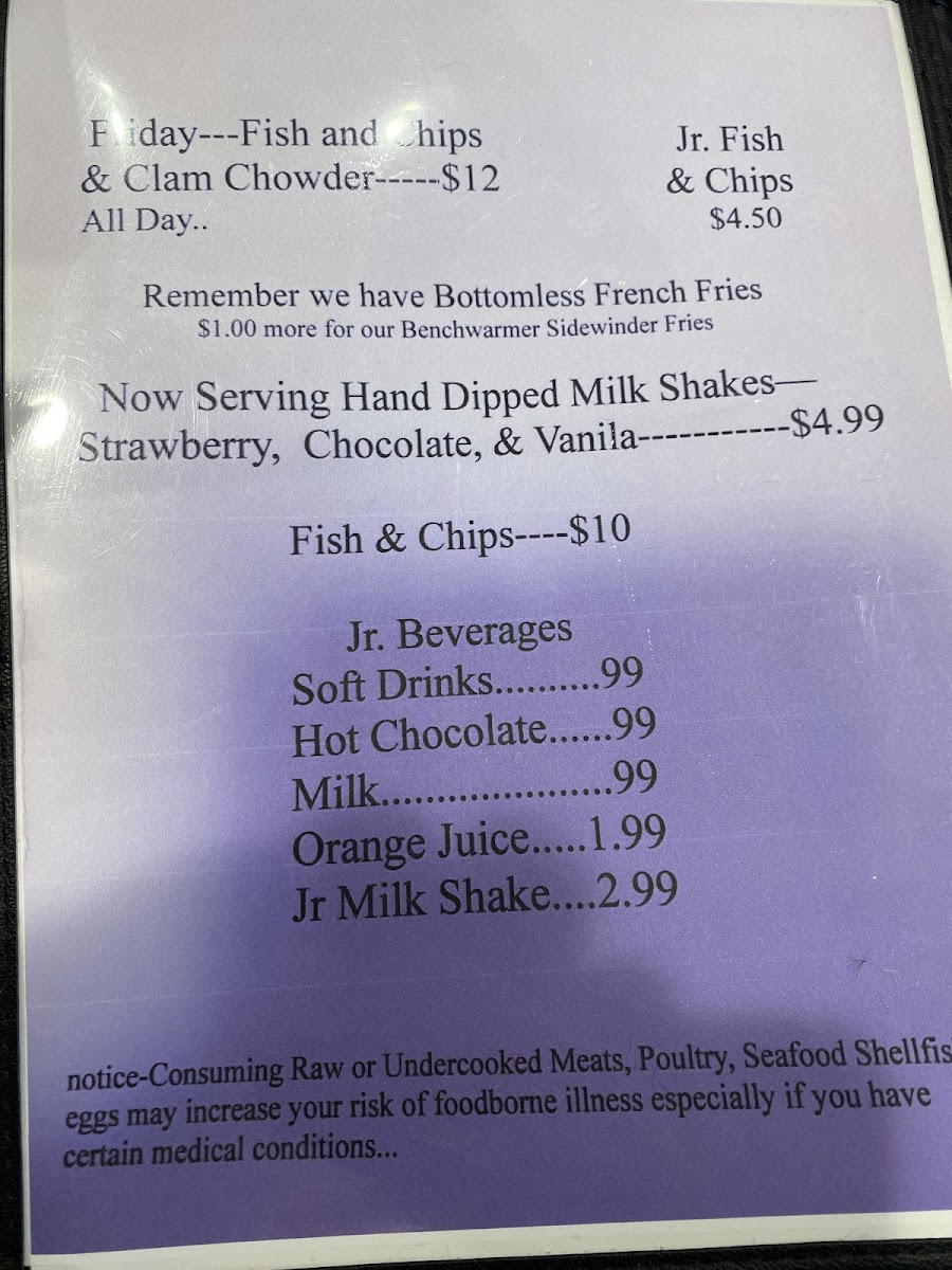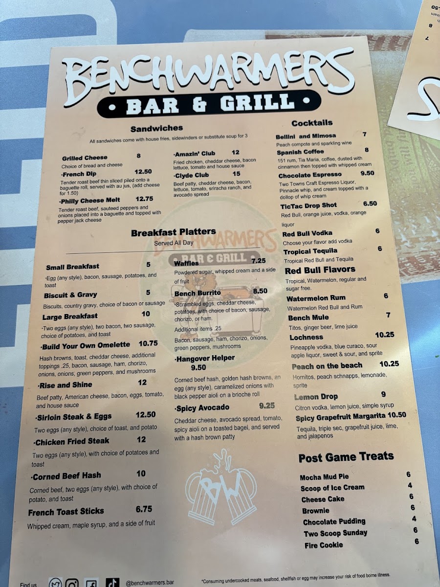 Benchwarmer's Bar & Grill Menu